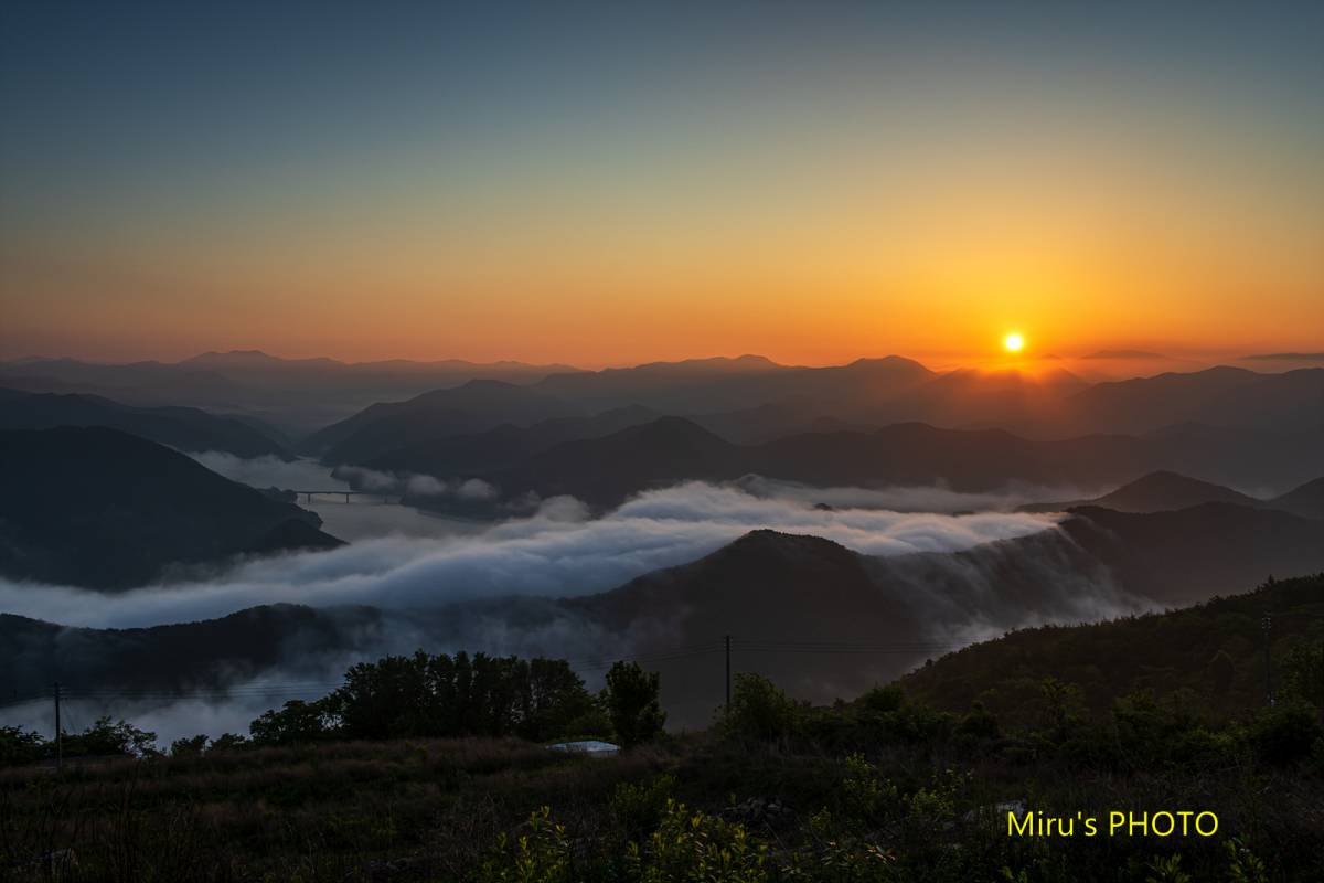 본 일출 사진은 2020년 5월 21일에 화산 마을 풍차 전망대에서 김충기 사진작가(저작권자)님이 촬영한 사진입니다.