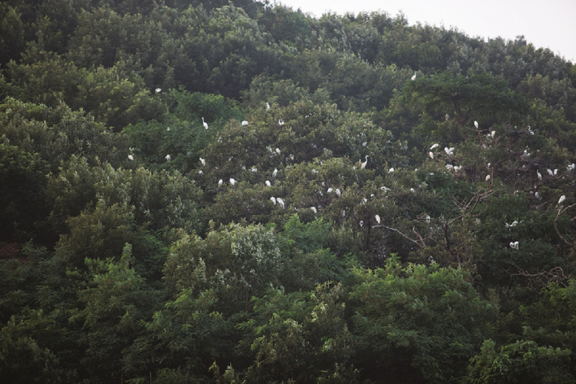 흰색 왜가리가 2/3, 회색 왜가리가 1/3분포하는데 회색 왜가리가 흰색 왜가리보다 1개월 빨리 왔다가 먼저 떠나며 황새과에 속하는 새로서 온몸이 희고 어깻죽지와 날개깃이 검으며 풍요를 상징하는 길조이다.